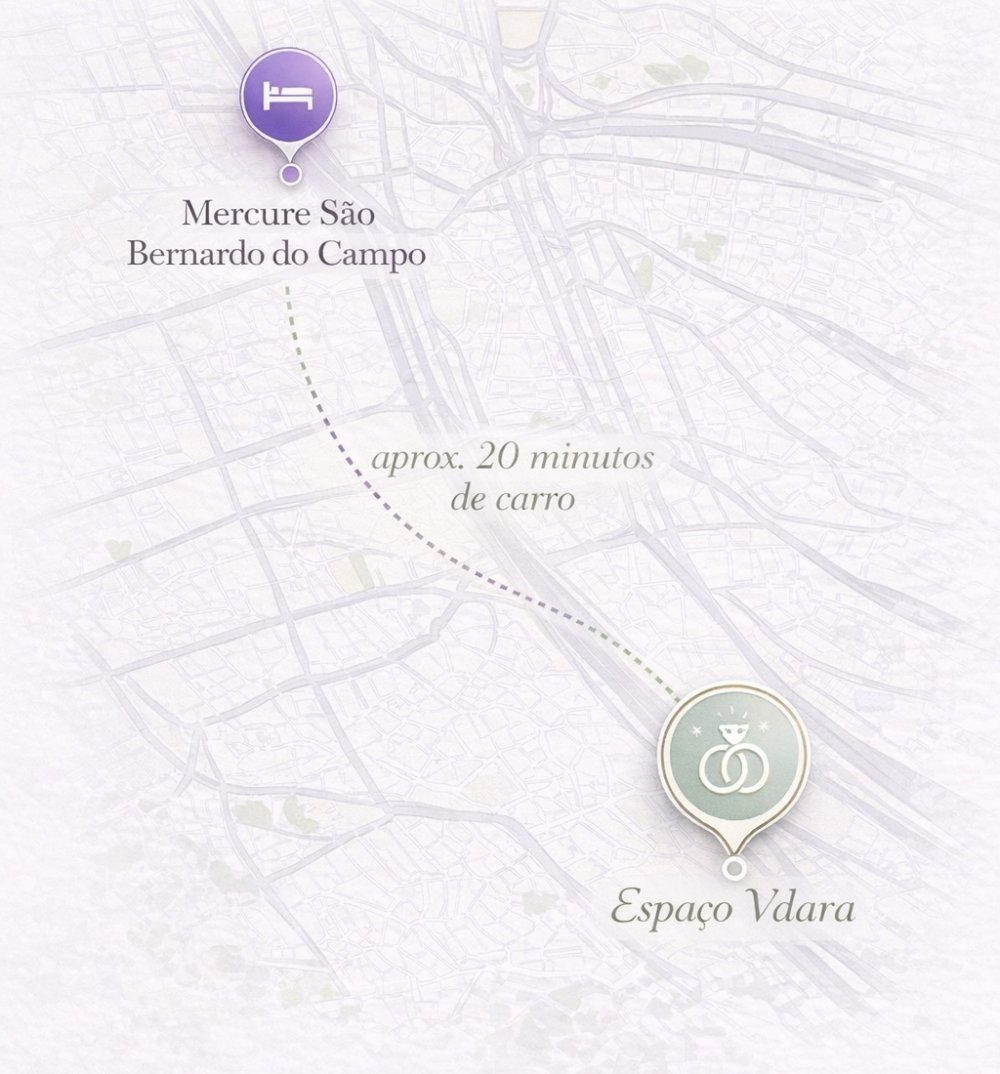 A nossa cerimônia acontece no dia 03.10.26, às 16h, no Espaço Vdara, em São Bernardo do Campo.